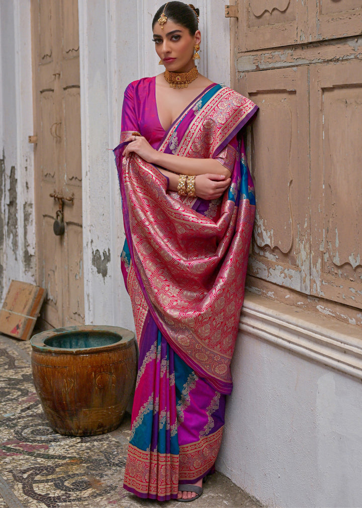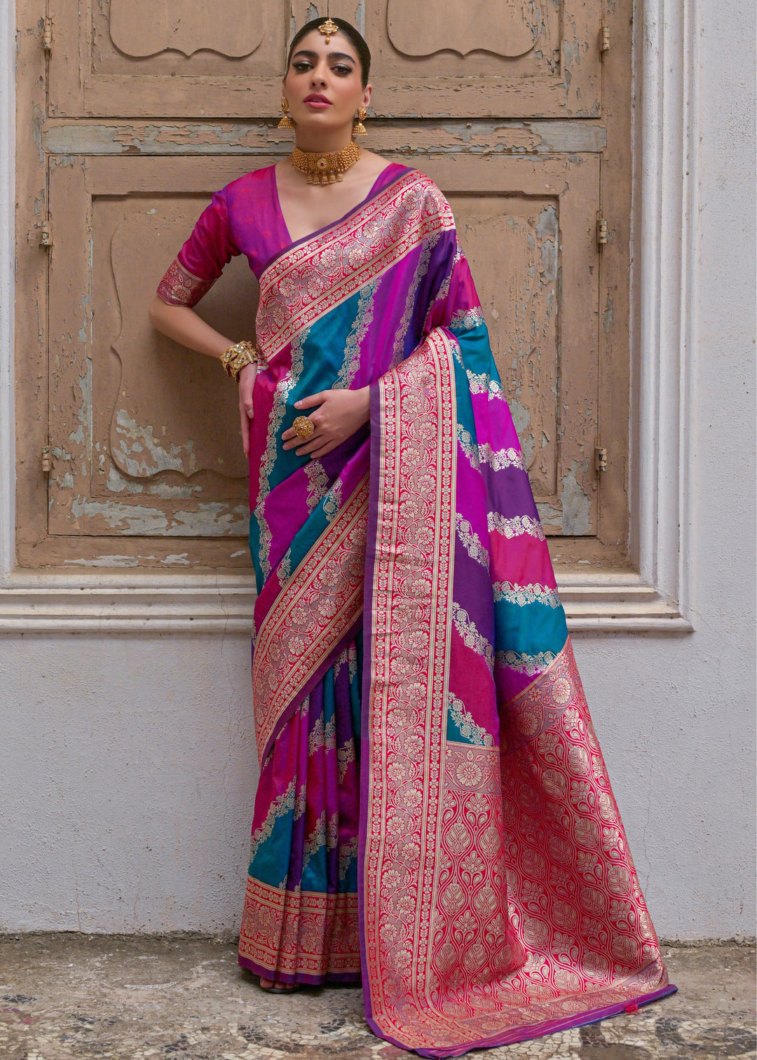 Saree: Banarasi Silk (Leriya Zari Woven Saree With Contrast Zari Woven Pallu)