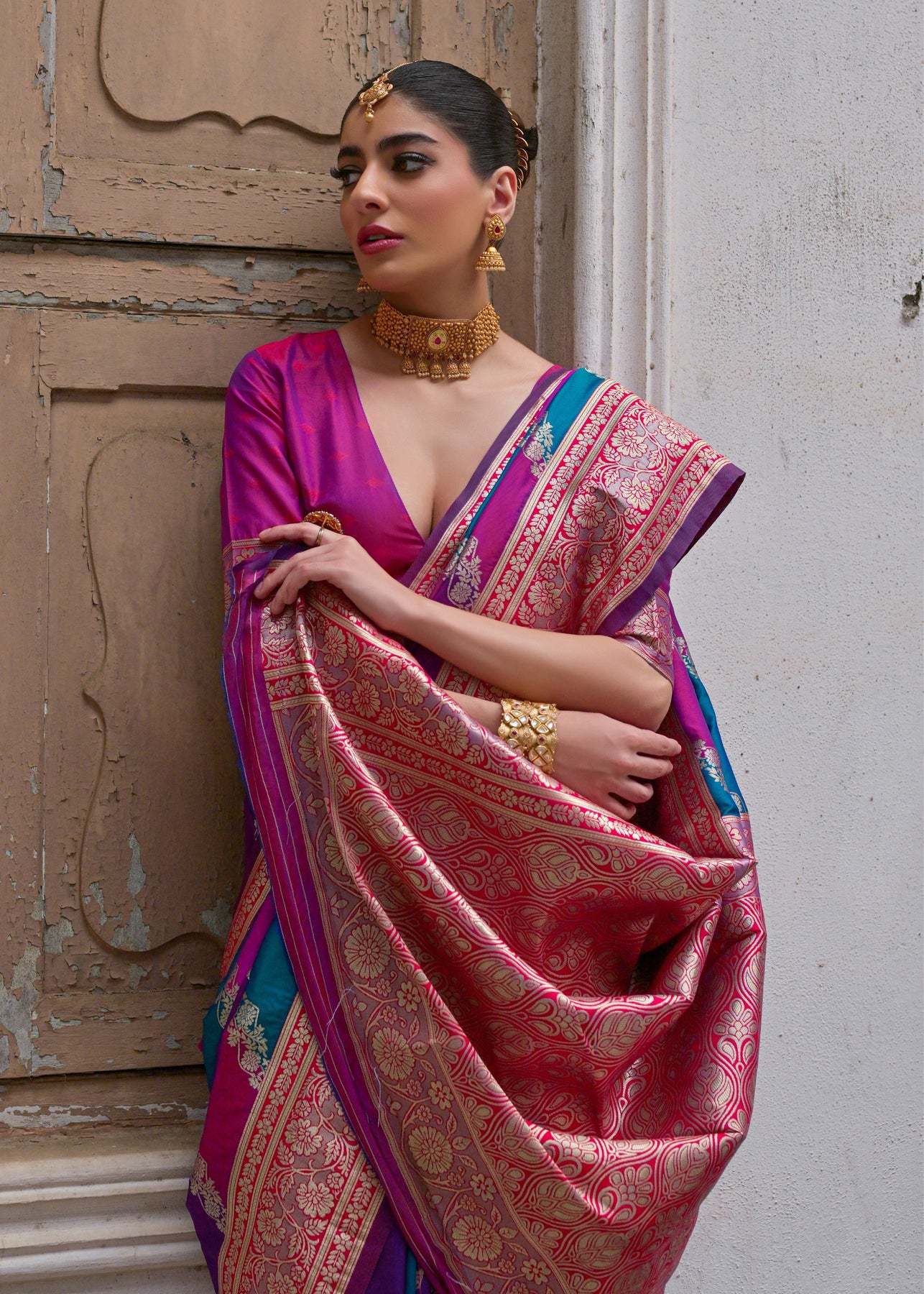 Pink Leriya Zari Woven Saree With Contrast Pallu