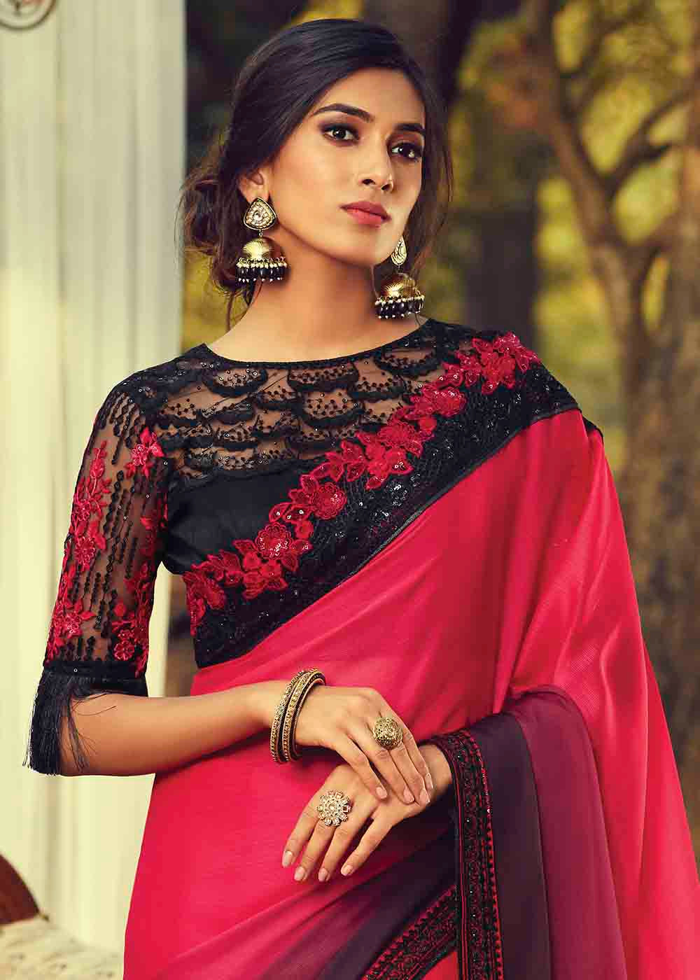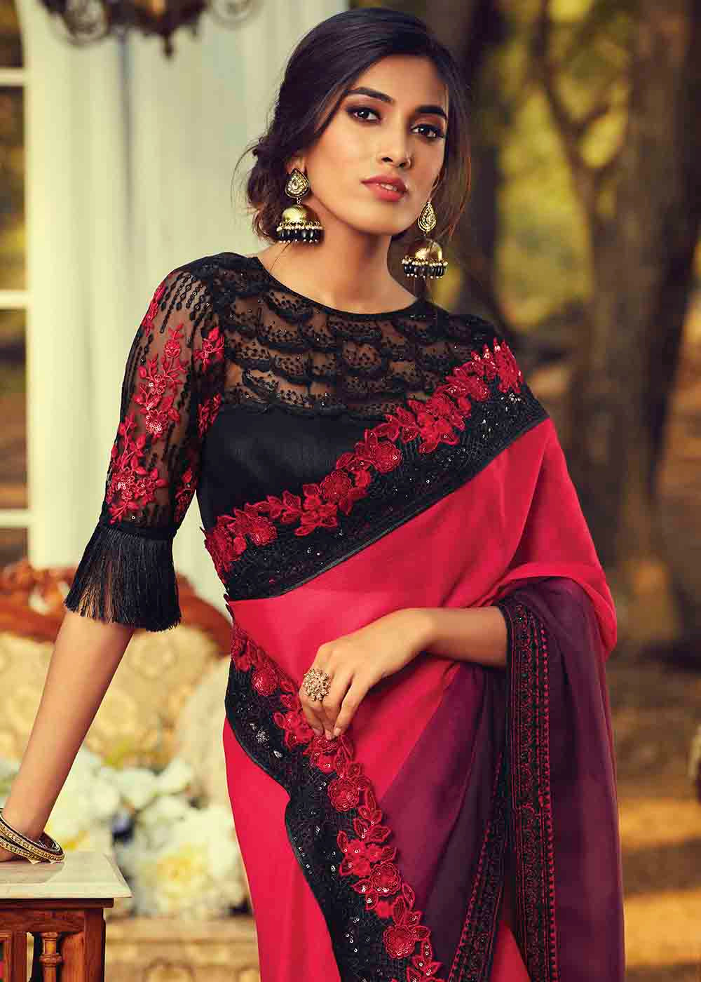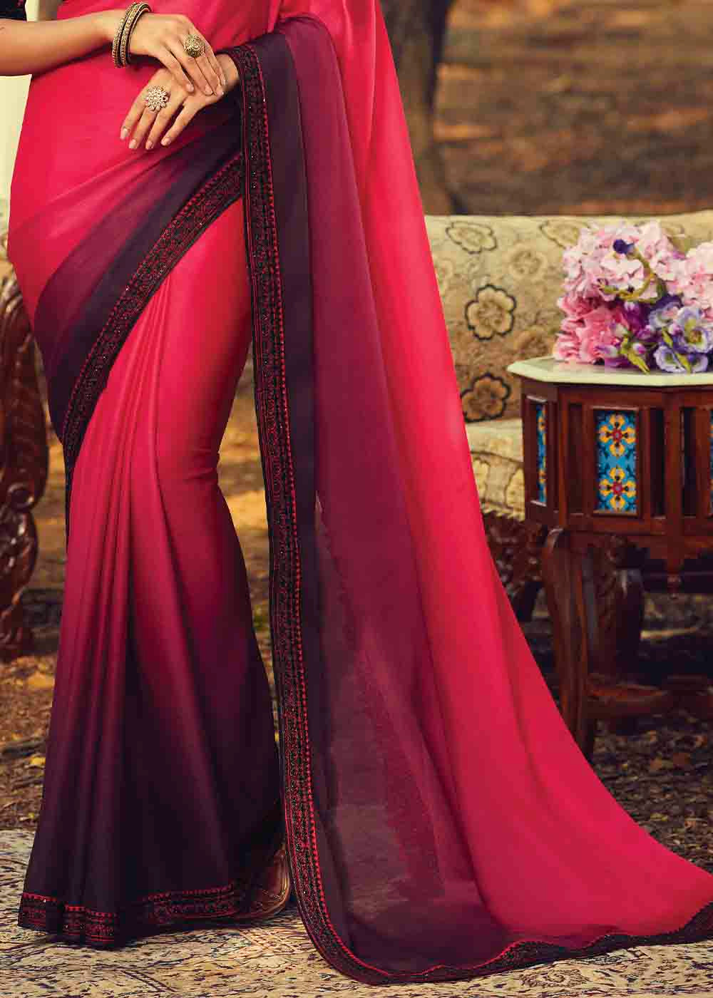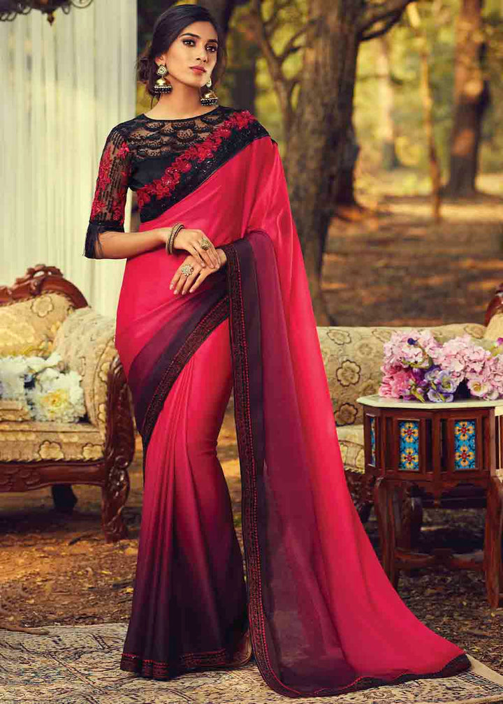 Pink & Purple Designer Embroidered Silk Saree with Sequence work