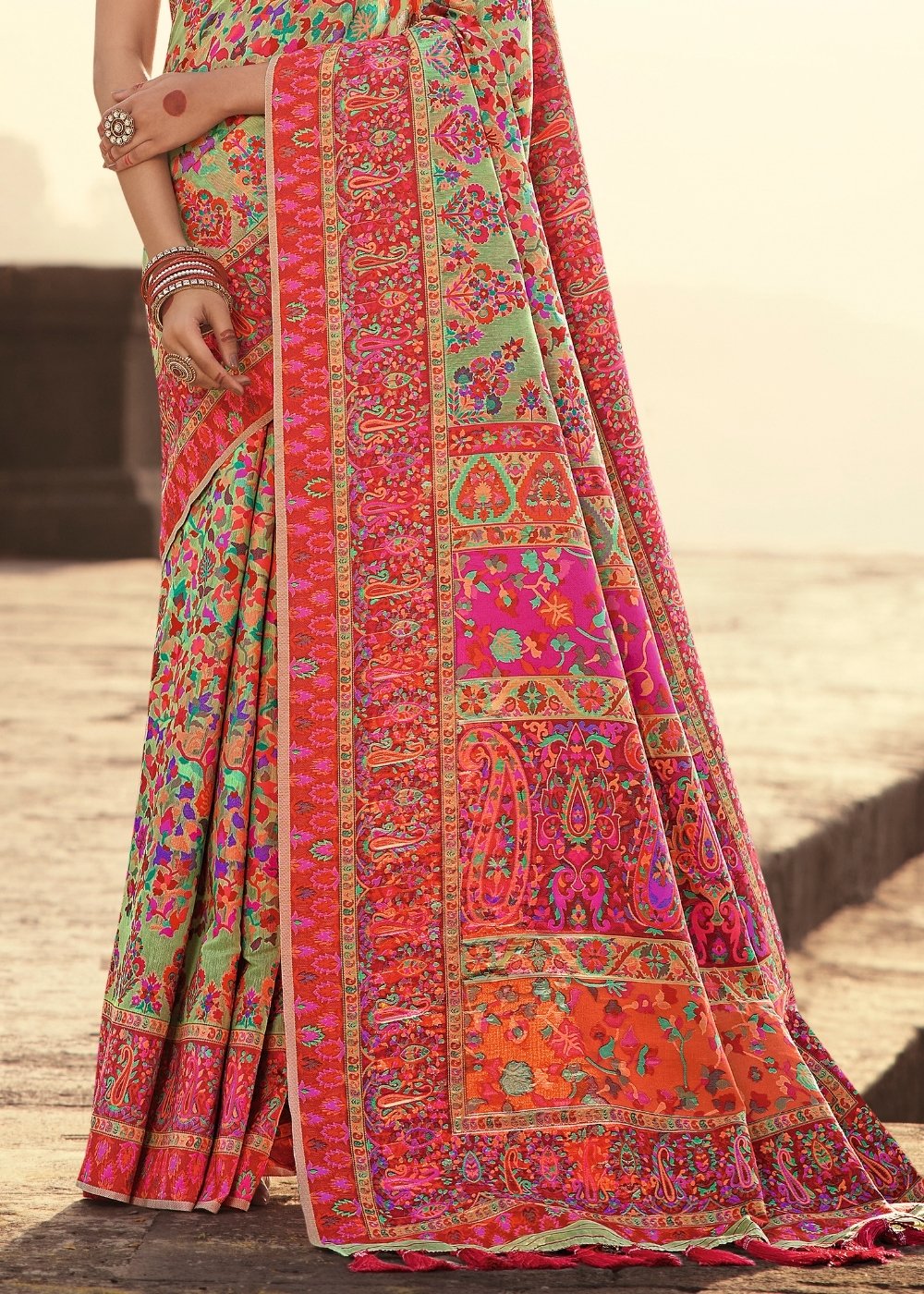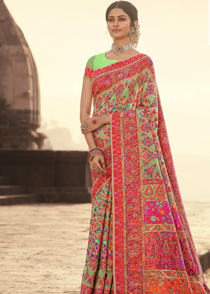 Pista Green Banarasi Kora Silk Saree with Pashmina Weaving & Zari Border Pallu