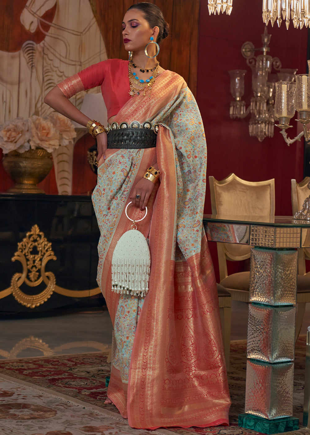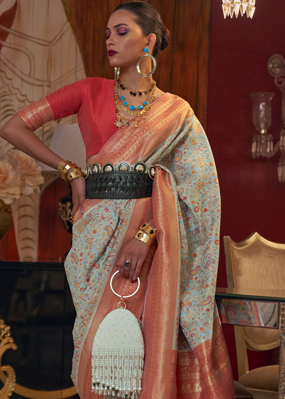Powder Blue Kashmiri Jamawar Woven Silk Saree
