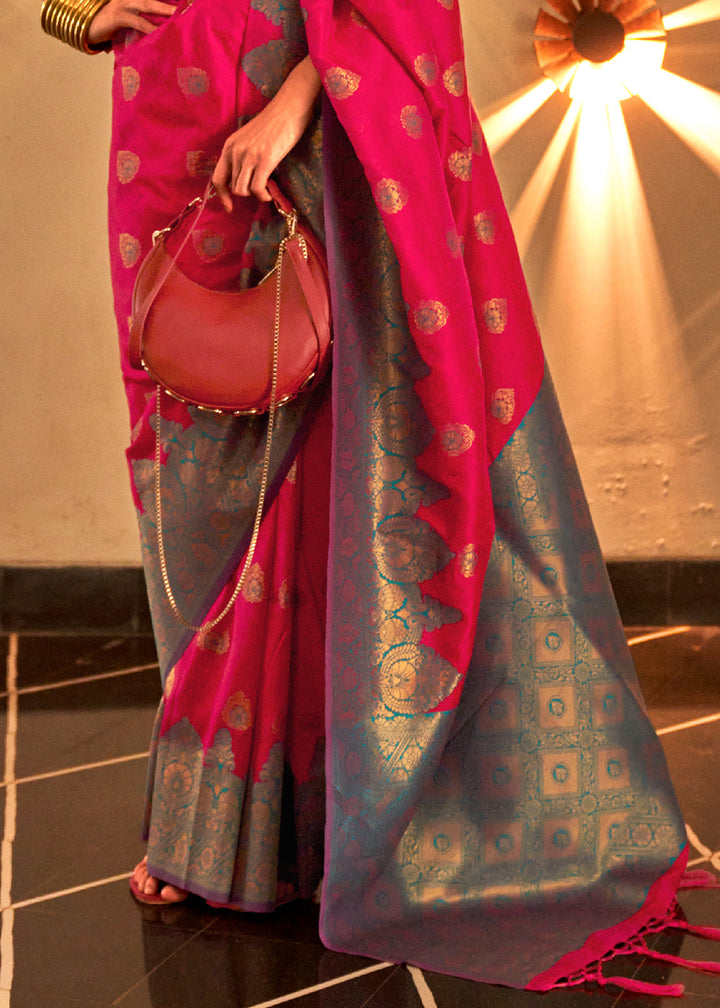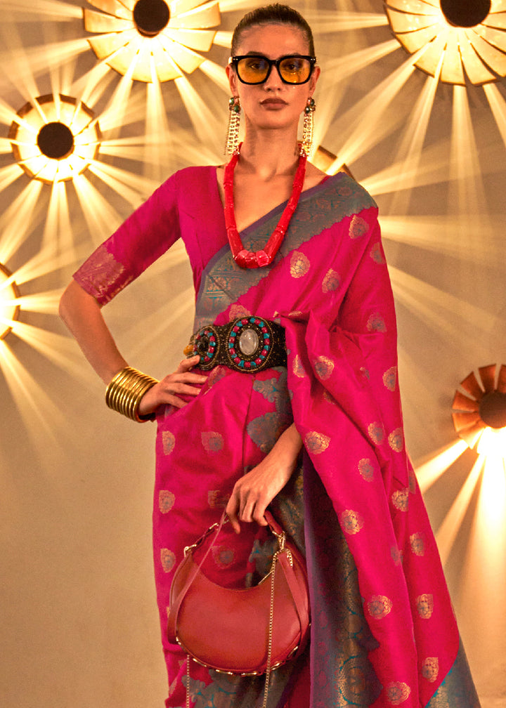 Raspberry Pink Handloom Woven Banarasi Silk Saree