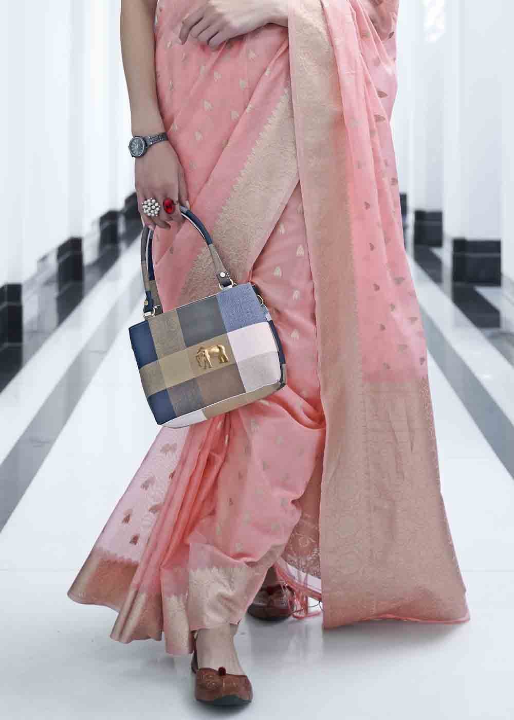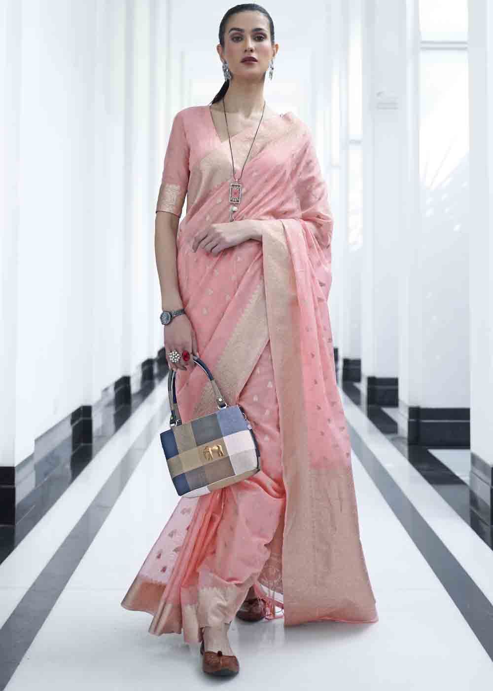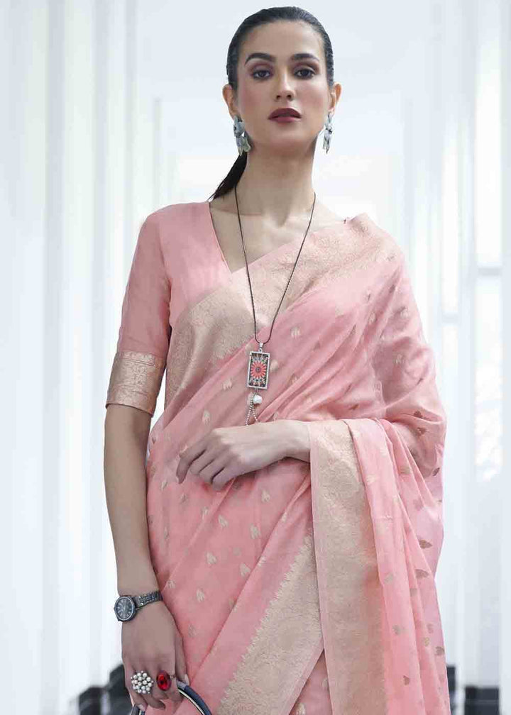 Dress confidently with tailored styles, refined fits, and striking silhouettes! Relish the comfort and beauty of this enticing Rose Pink woven Designer Silk Saree and steal the show. Decked with a dazzling border and splendid motifs, this drape will add a pop of splendour to your ethereal look and level up your style game.