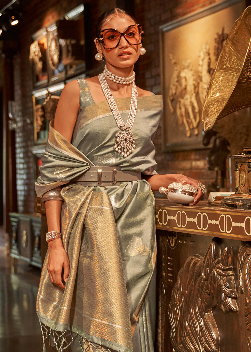 Seal Grey Copper Zari Woven Designer Silk Saree
