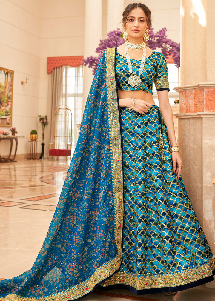 Shades Of Blue Art Silk Lehenga Choli with Thread, Zari,Dori & Sequins work