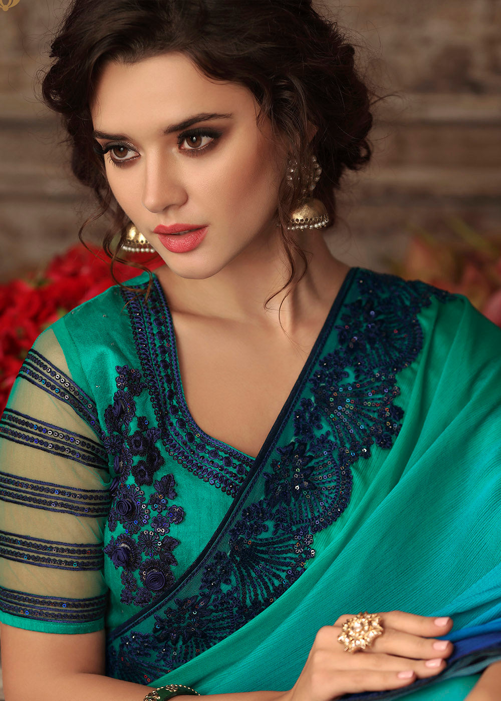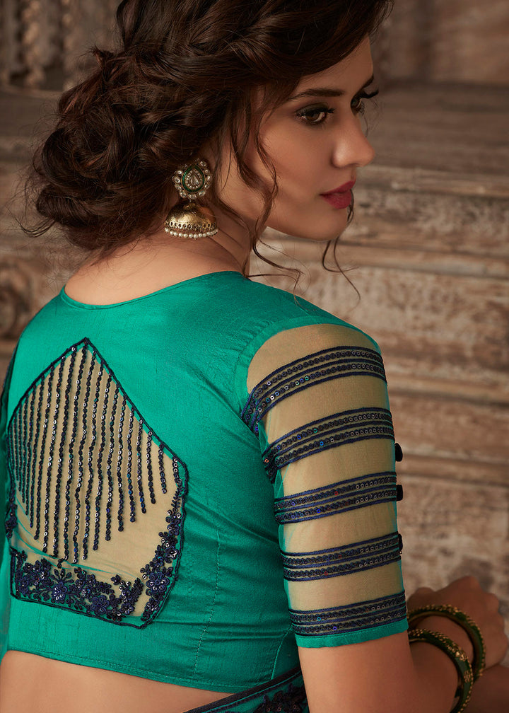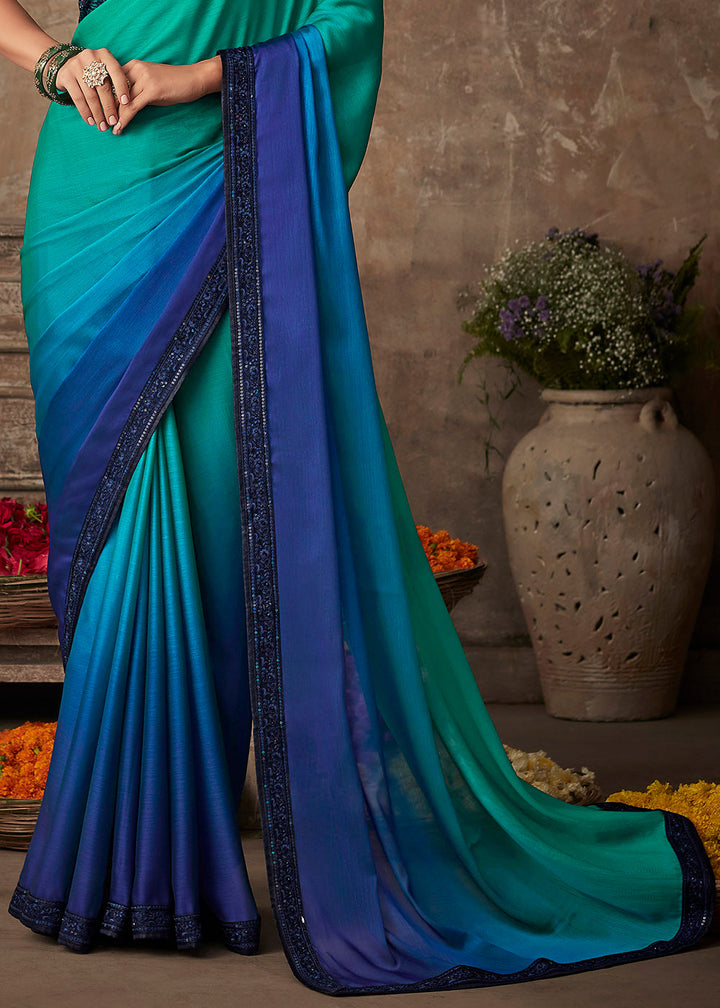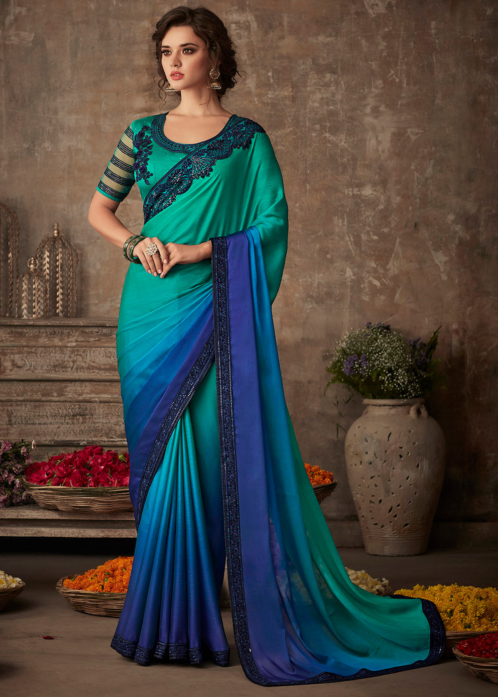 Shades Of Blue Designer Embroidered Silk Saree with Sequence work