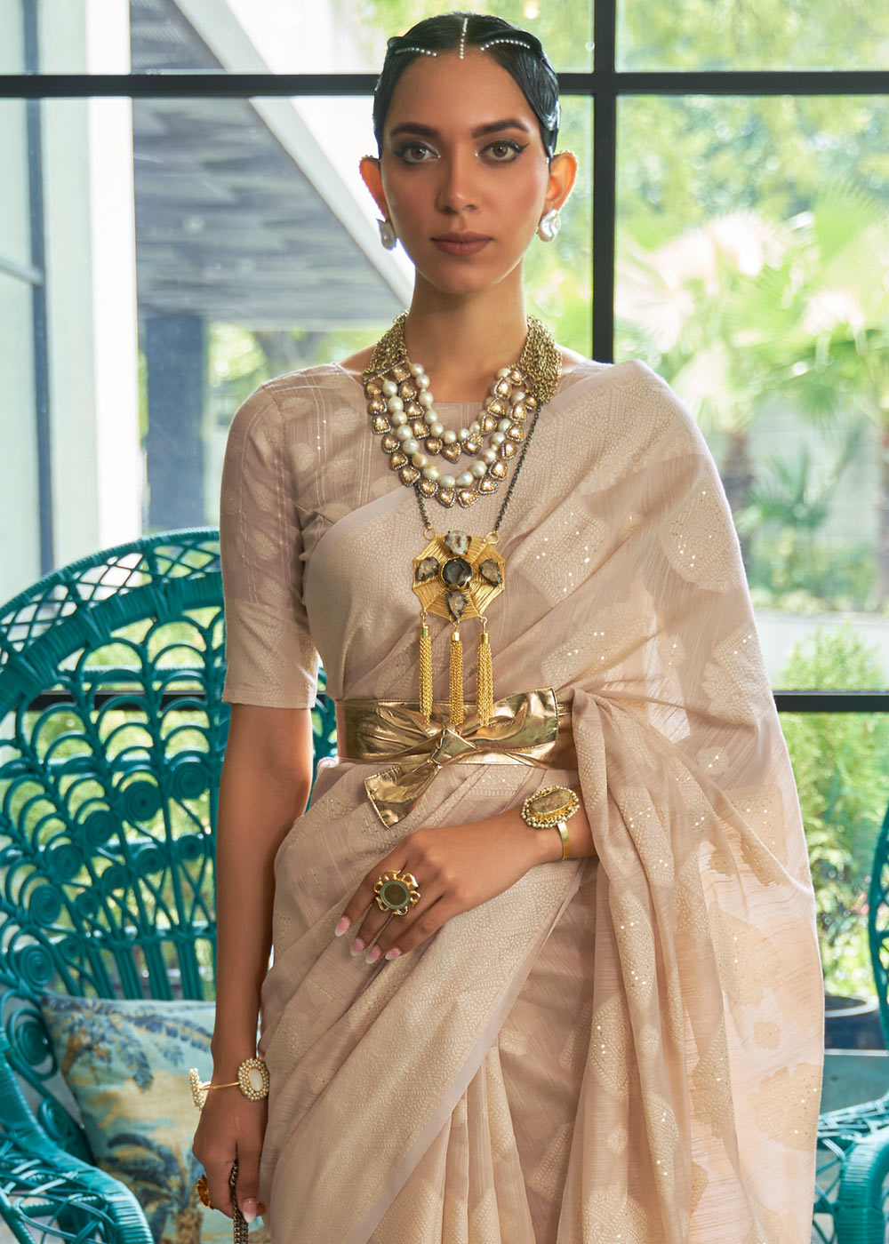 Shades Of Brown Chikankari Weaving Silk Saree with Sequins work