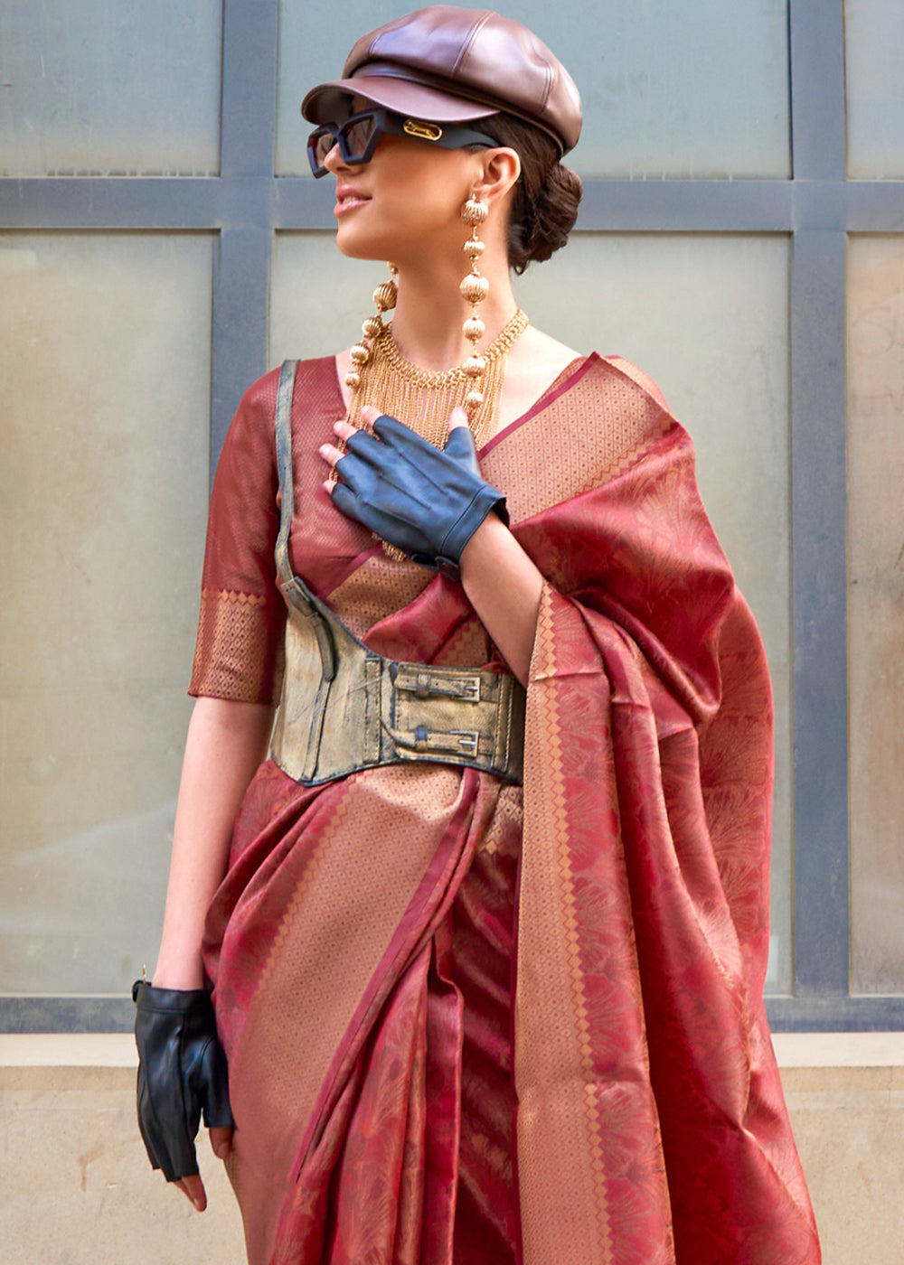 Shades Of Brown Handwoven Two Tone Organza Silk Saree