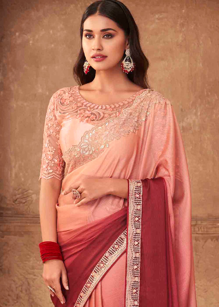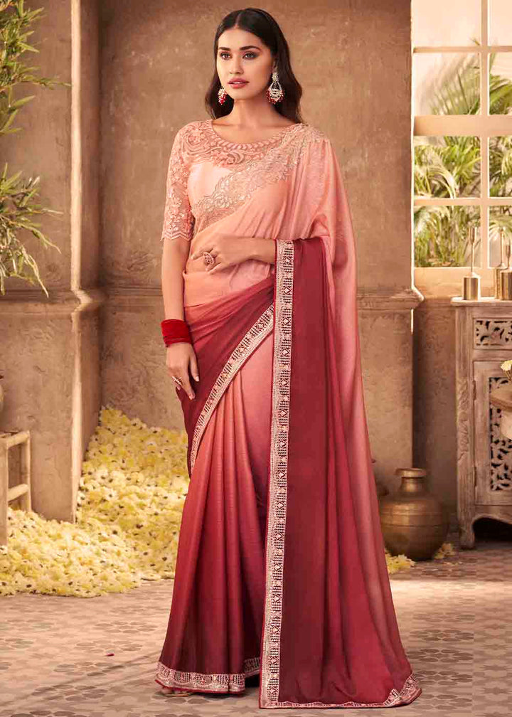 Shades Of Pink Designer Embroidered Satin Silk Saree with Sequence work