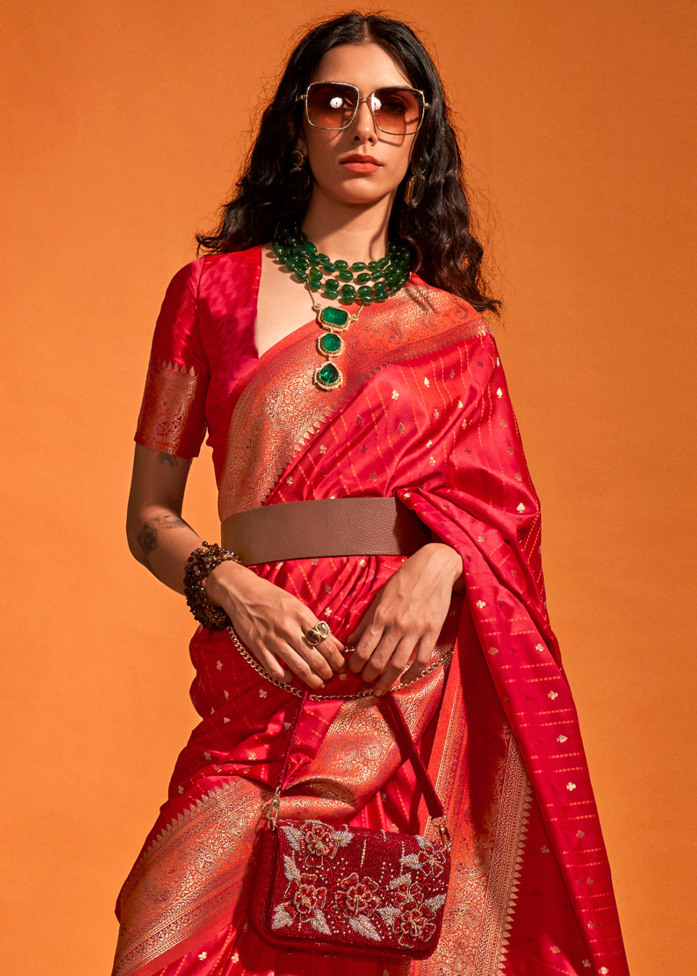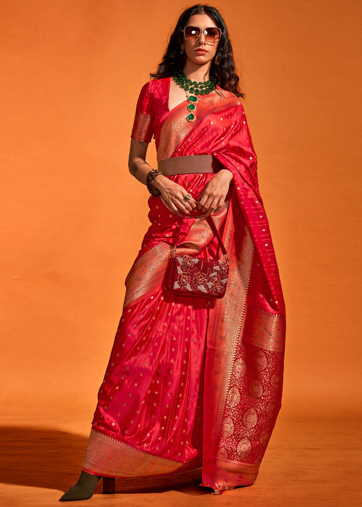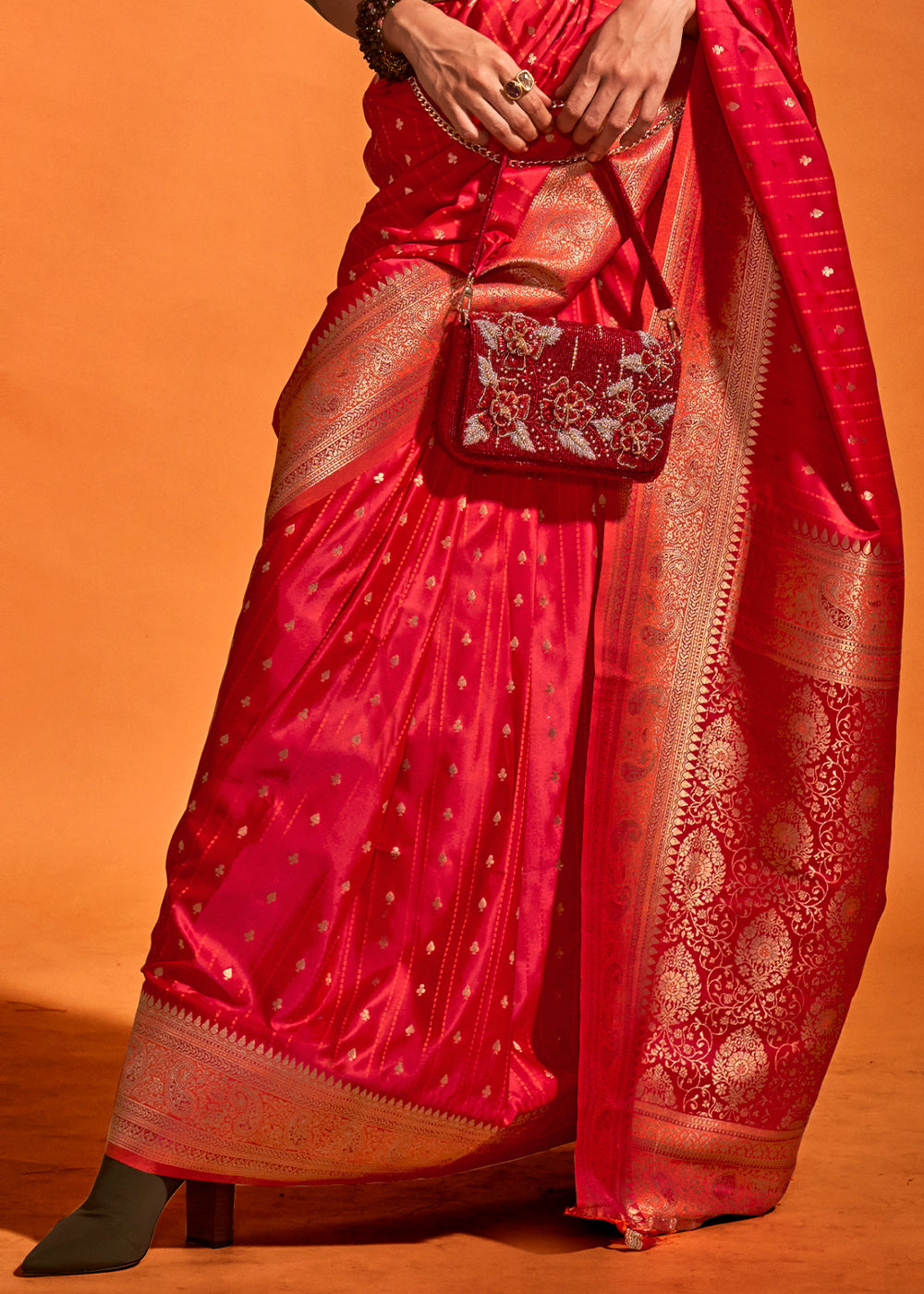 Shades Of Red Handloom Woven Designer Satin Silk Saree