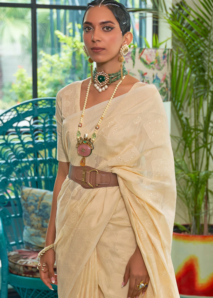 Shades Of Yellow Chikankari Weaving Silk Saree with Sequins work