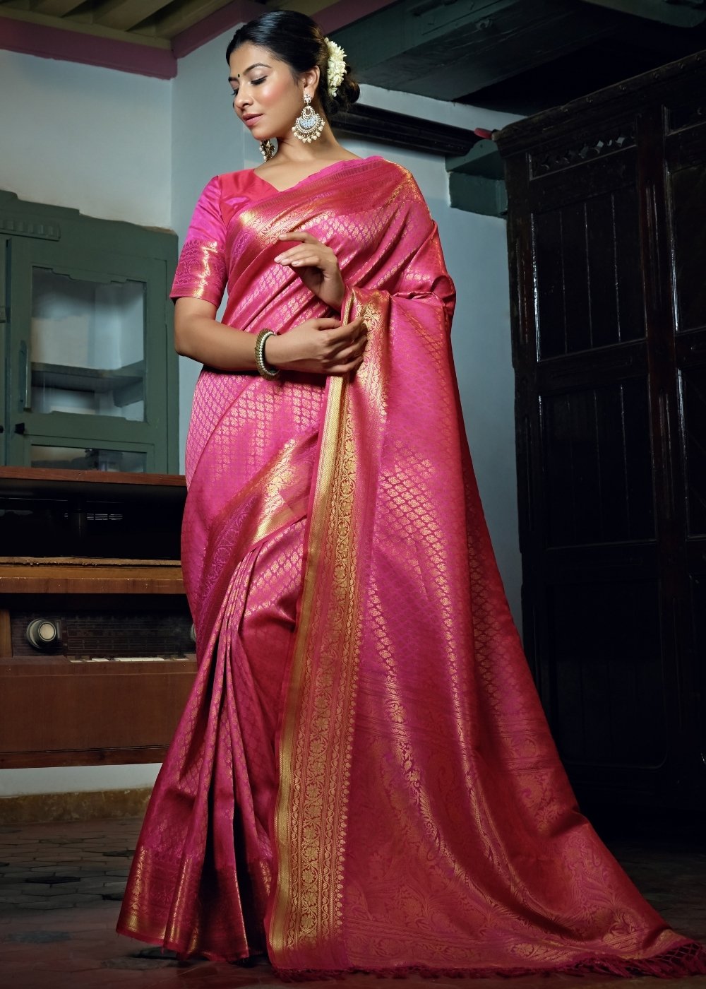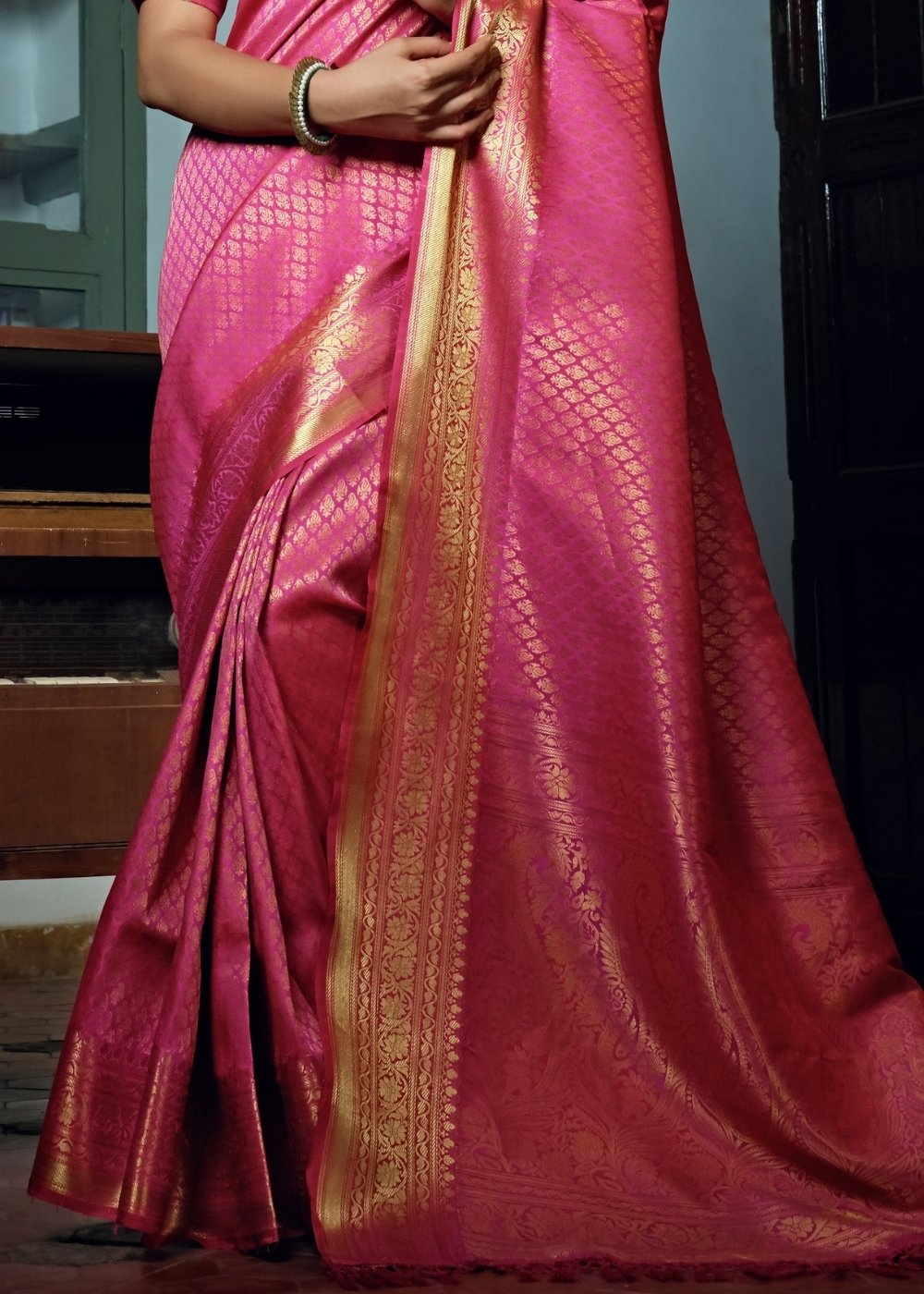 Shocking Pink Woven Kanjivaram Silk Saree