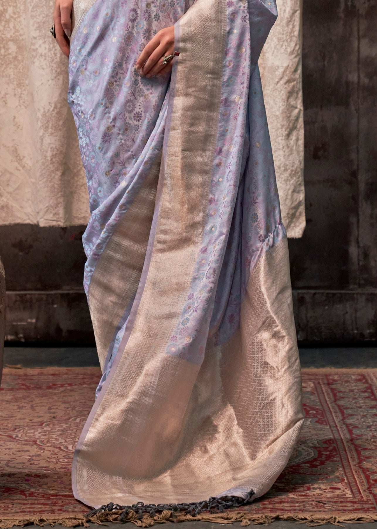 Sky Blue Pure Satin Handloom Weaving Silk Sarees