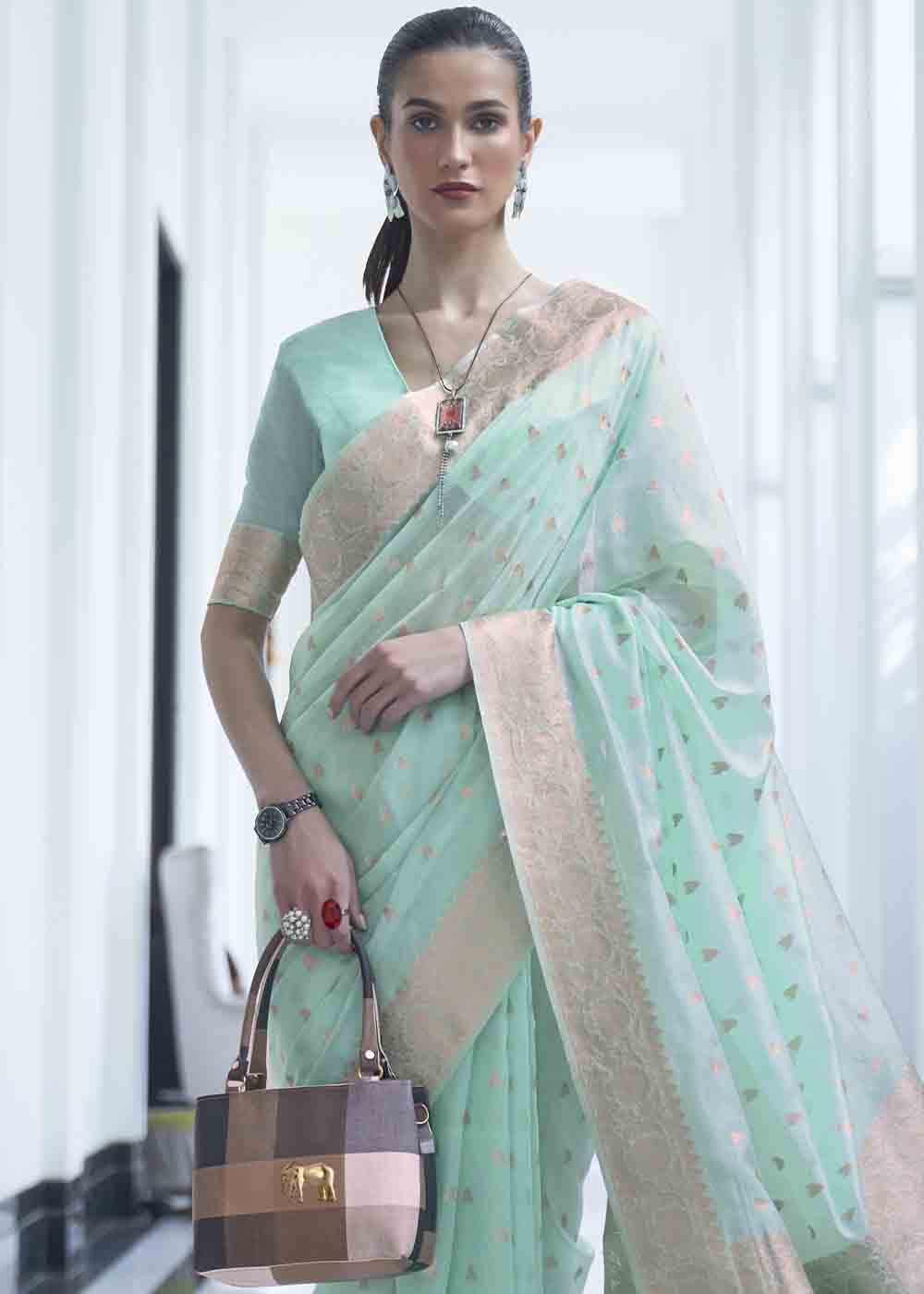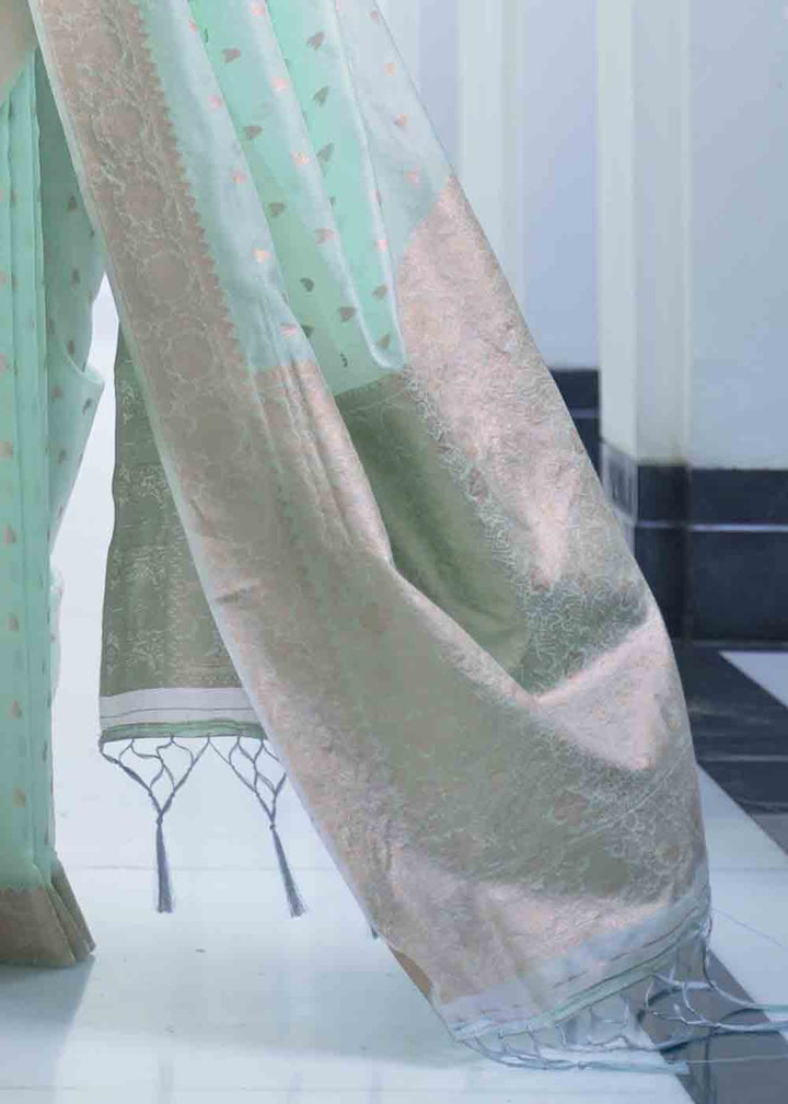 Dress confidently with tailored styles, refined fits, and striking silhouettes! Relish the comfort and beauty of this Soft Cyan Blue woven Designer Silk Saree and steal the show. Decked with a dazzling border and splendid motifs, this drape will add a pop of splendour to your ethereal look and level up your style game.