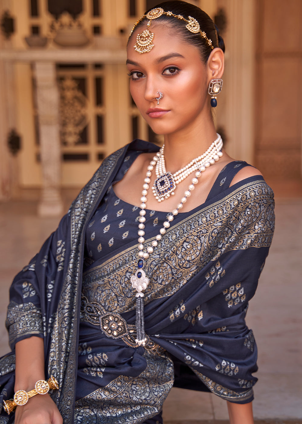 Space Blue Zari Woven Soft Banarasi Silk Saree