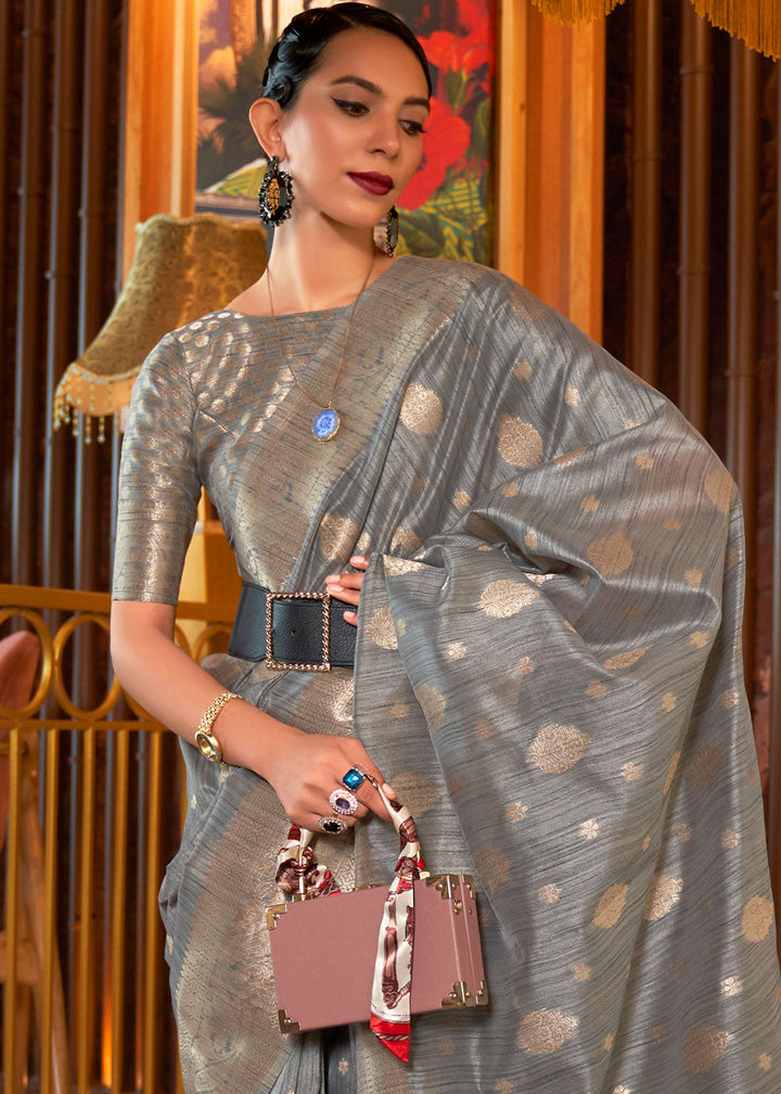Steel Grey Handloom Weaving Tussar Silk Saree