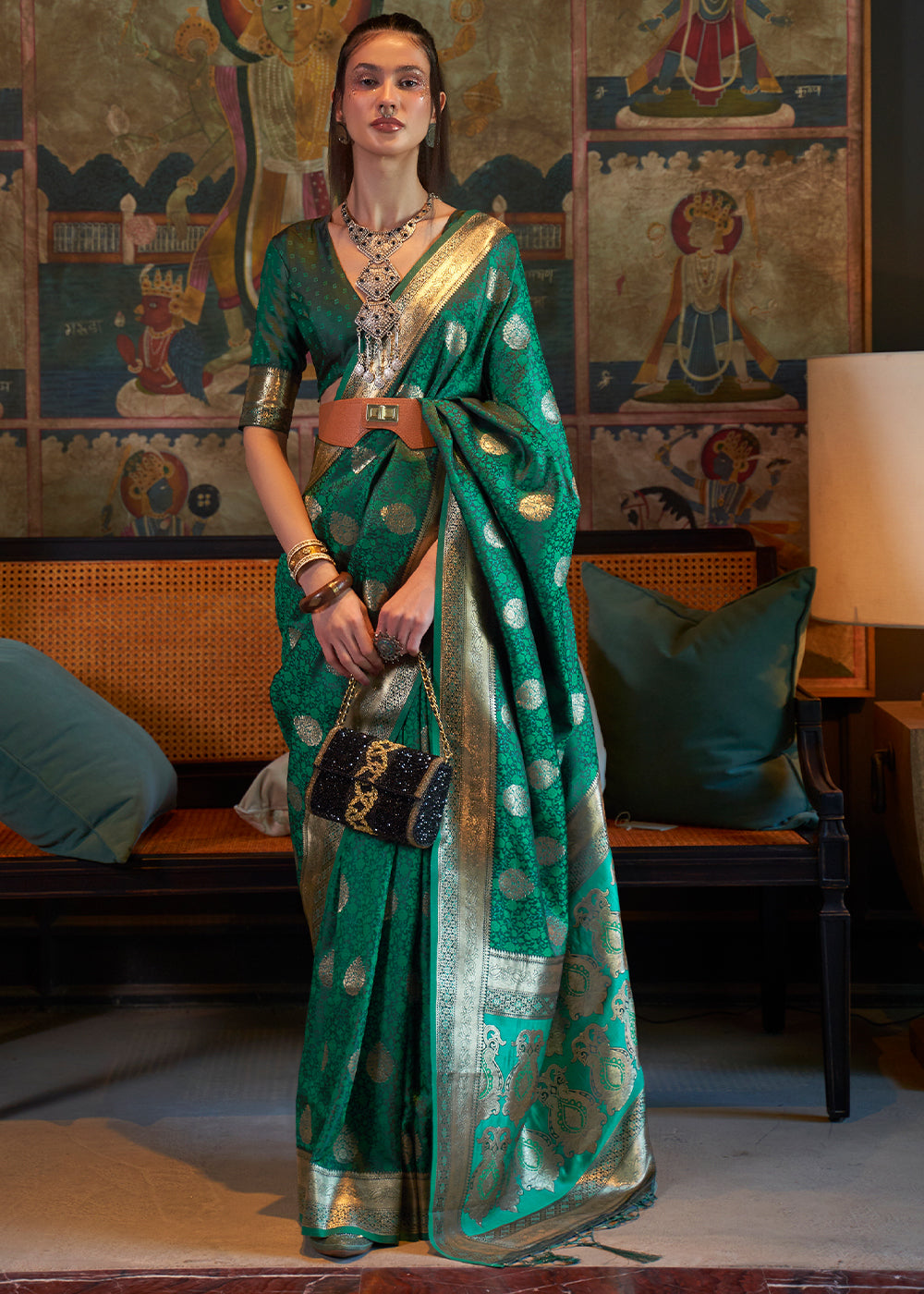 Teal Green Tanchoi Handloom Woven Satin Silk Saree
