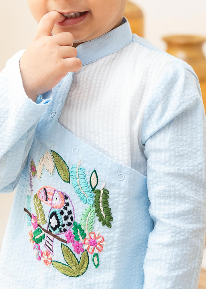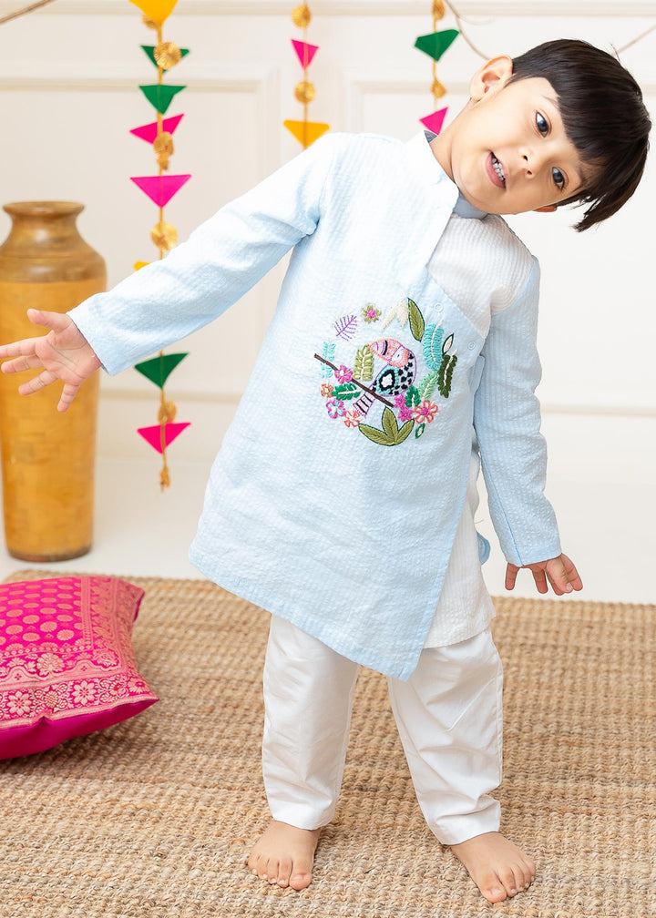 Organic Cotton Light Blue Angrakha Kurta with Pajama - Toucan