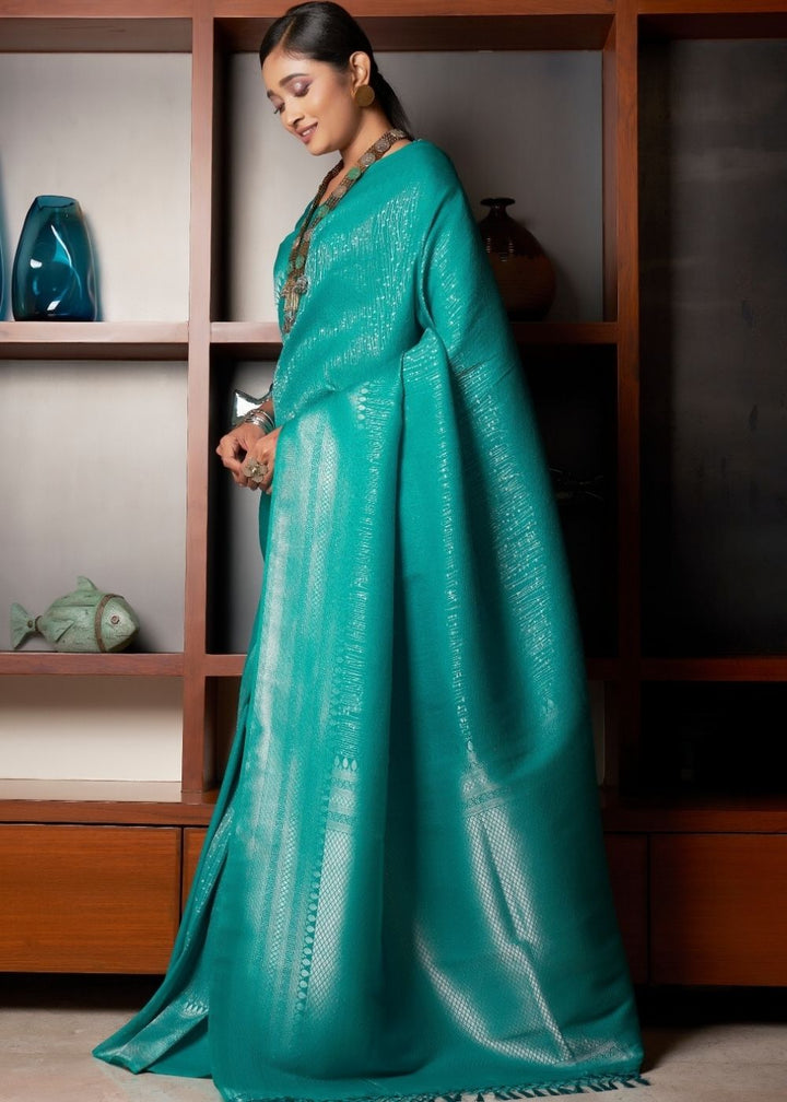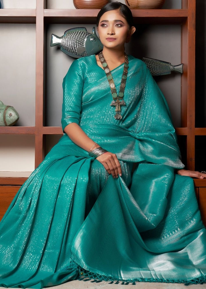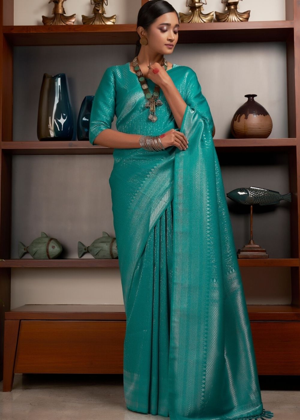 Turkish Blue Silver Zari work Kanjivaram Silk Saree