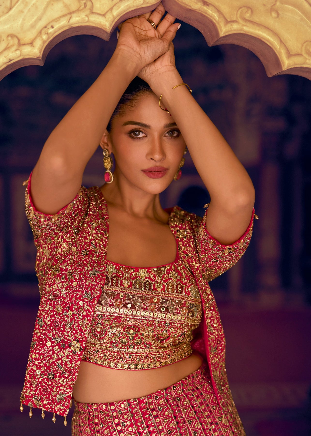 The Wine Red Georgette Salwar Suit is an elegant and contemporary ethnic ensemble designed to combine traditional charm with modern flair. It comes as a coordinated three–piece set: a koti (jacket-style top), a blouse and a palazzo bottom — all crafted in premium georgette fabric for a fluid, graceful drape. It is ideal for festive gatherings, engagement functions, evening parties, family get-togethers, or any event where you want to balance poise and comfort.