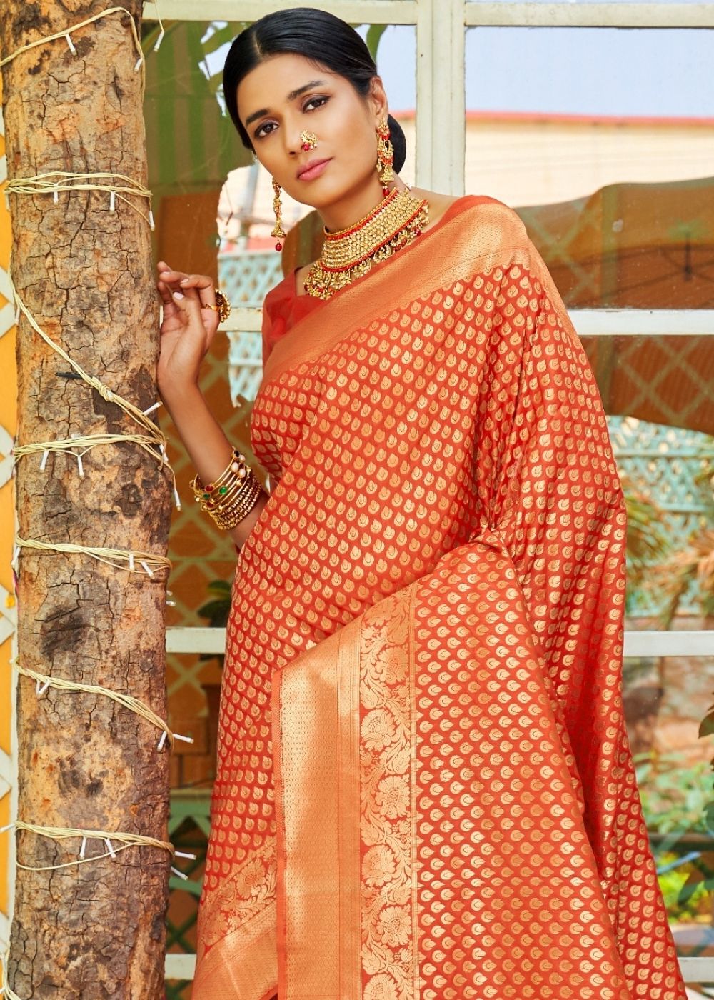 Yam Orange Woven Banarasi Brocade Silk Saree