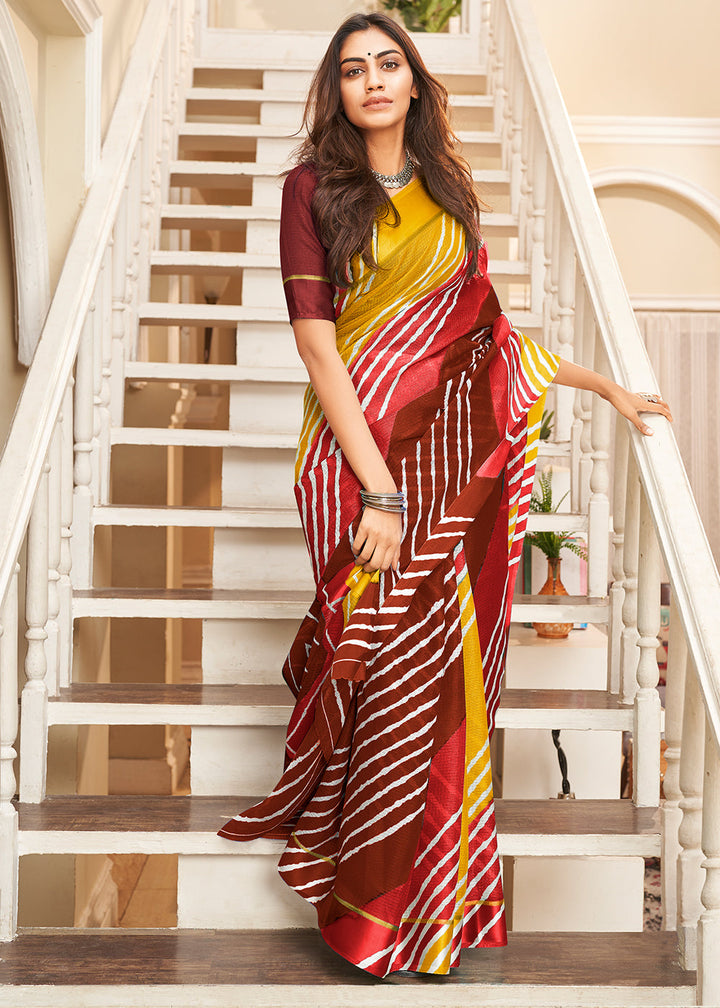 Yellow & Pink Leheriya Printed Cotton Saree: Summer Edition